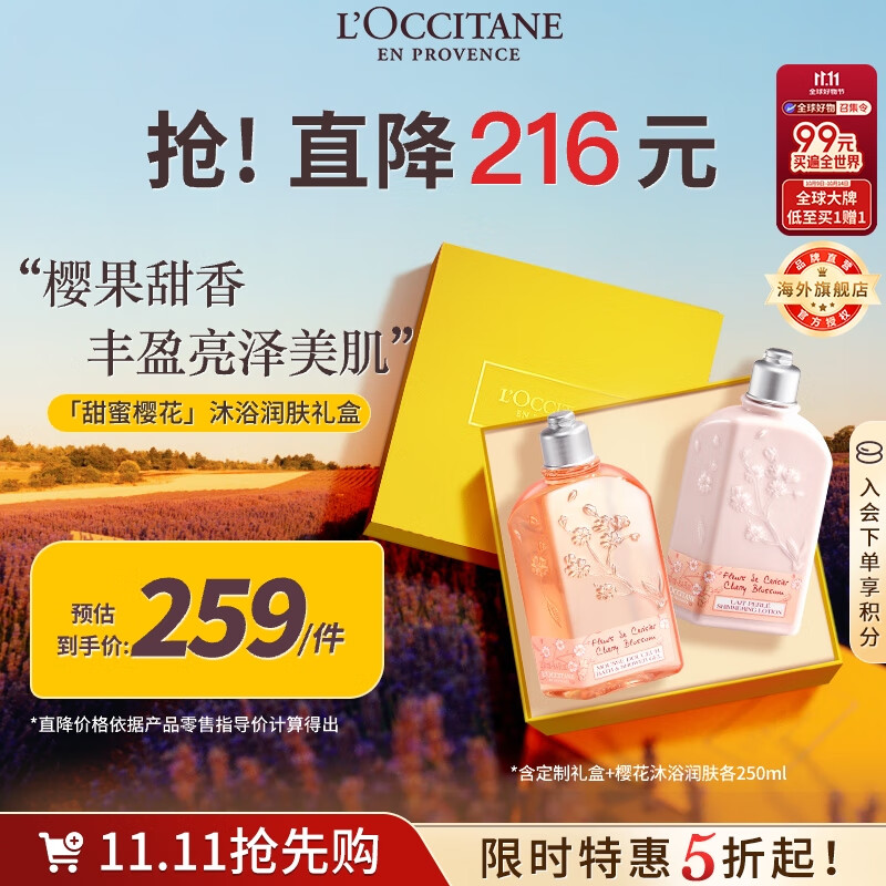 欧舒丹樱花沐浴露250ml+身体乳250ml礼盒法国原装进口送人礼物