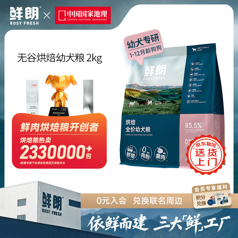 鲜朗无谷低温烘焙狗粮泰迪比熊小型犬金毛拉布拉多通用奶糕幼犬专用 烘焙幼犬粮2kg【单包装】