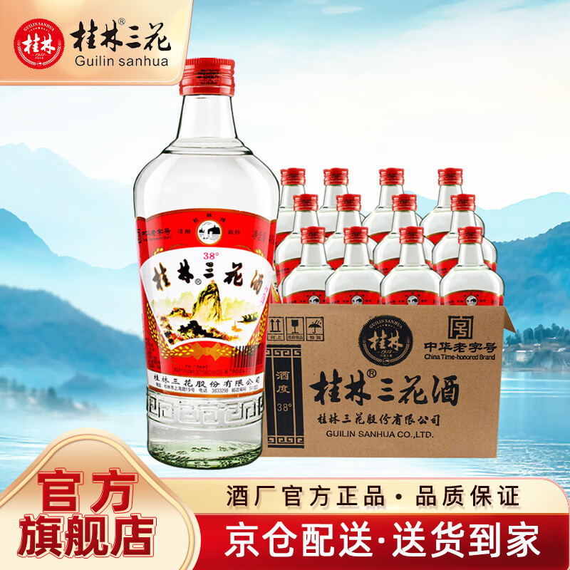 桂林三花酒38度桂林玻璃瓶装米香型白酒桂林旅游特产 38度 480mL 12瓶