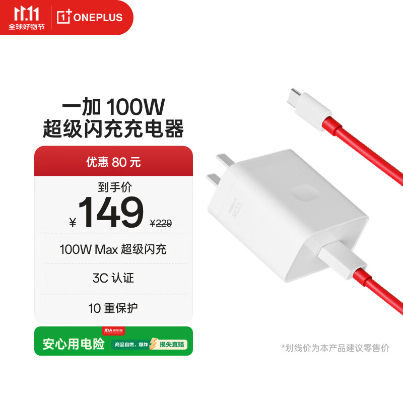 一加 原装 SUPERVOOC 100W 超级闪充充电器套装 3C认证 适配 OPPO华为小米荣耀VIVO iphone17 系列
