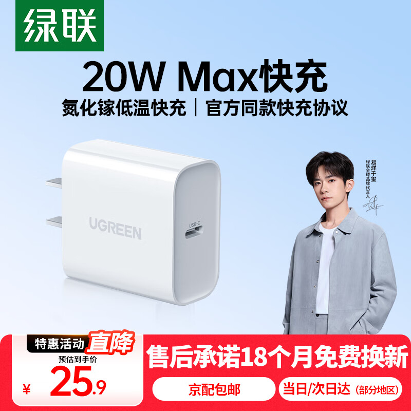 绿联苹果充电器头iphone17快充套装PD20W充电头适用苹果16ProMax14Plus/15/13/12手机iPad 【PD20W】苹果8-17快充头