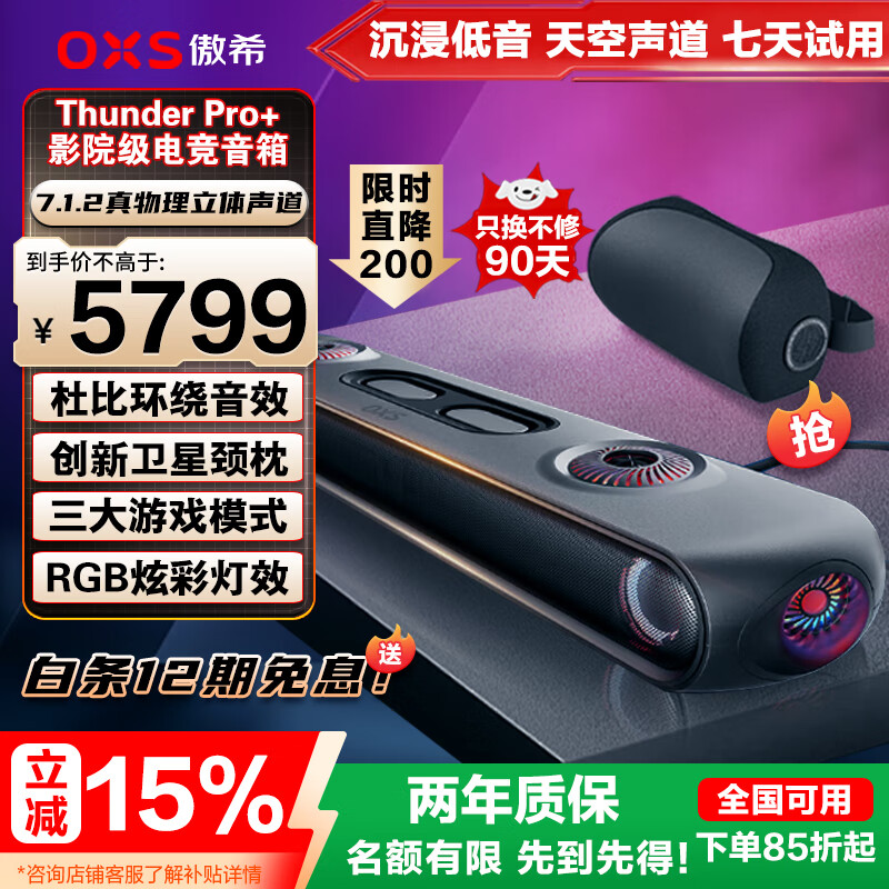 OXS傲希音响Thunder Pro+电竞游戏音箱7.1.2真物理杜比全景声低音炮长条形电脑桌面回音壁 黑神话悟空