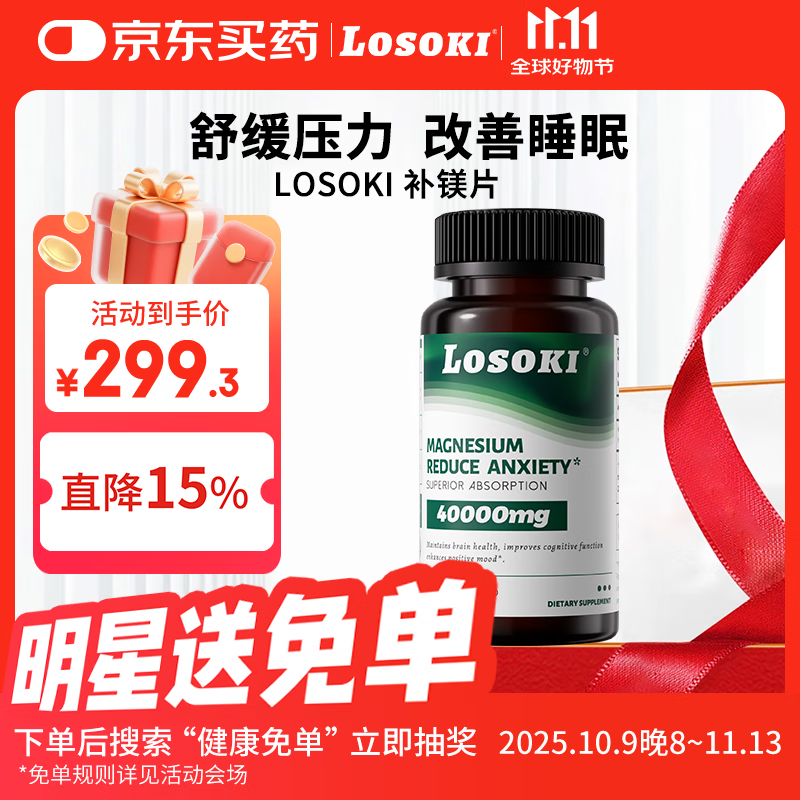 losoki美国原装进口补镁片成人高吸收缓解压力提升专注力改善睡眠