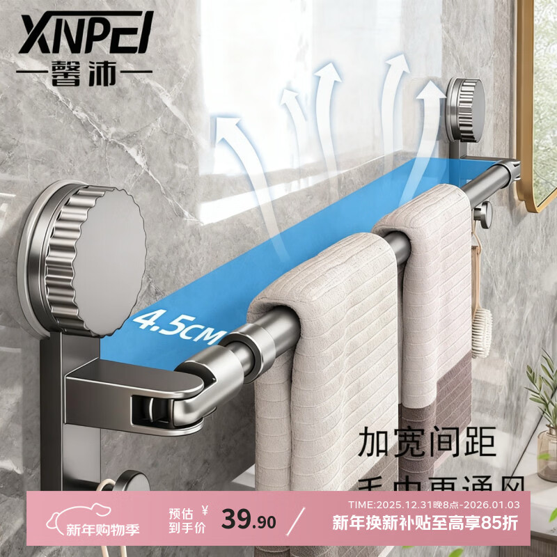 馨沛吸盘毛巾架伸缩式毛巾杆卫生间免打孔浴室浴巾挂杆洗手间置物挂架