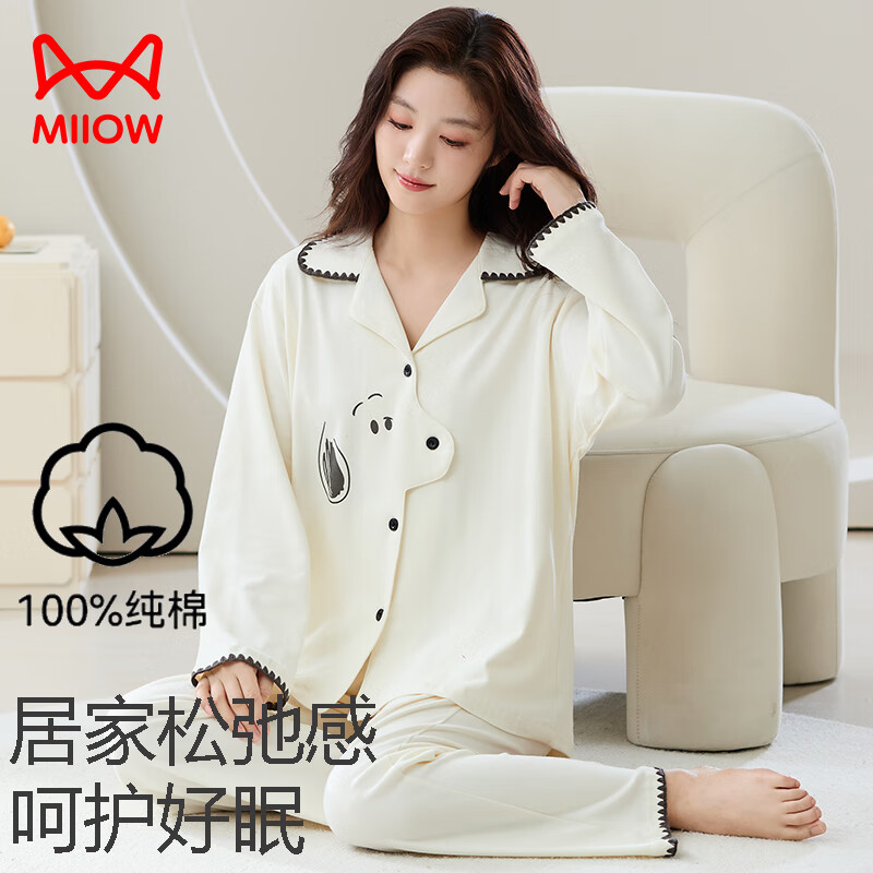 猫人【纯棉】长袖睡衣女春秋25年新品可爱小狗小众设计款全棉家居服