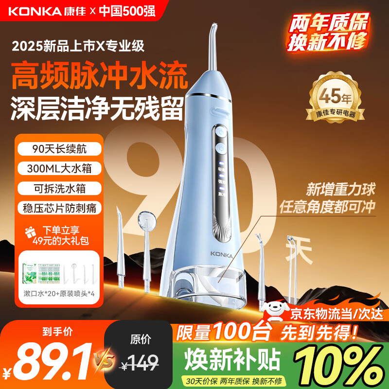 康佳(KONKA)冲牙器家用洗牙器洁牙器牙齿冲洗器水牙线立式便携式清洁正畸预防牙结石情侣生日礼物送女友送男友