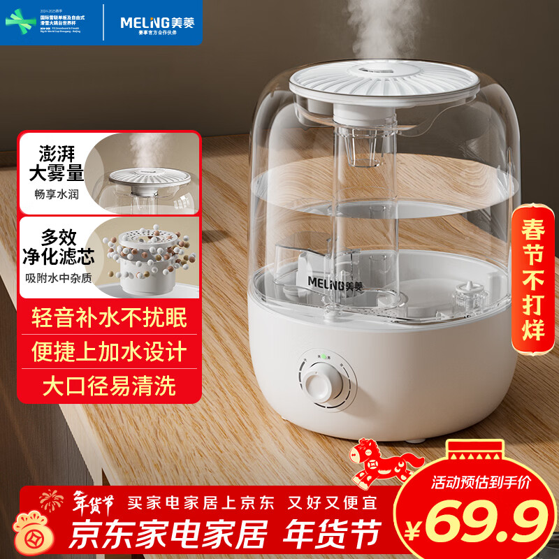 美菱(MeiLing)加湿器空气加湿器 家用轻音卧室大容量大雾量孕妇婴儿净化空气小型空调喷雾上加水加湿器MH-T105