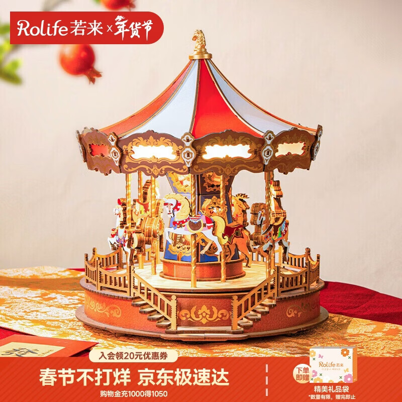 若来(Rolife)旋转木马八音盒diy手工拼装积木模型玩具音乐盒情人节新年礼物