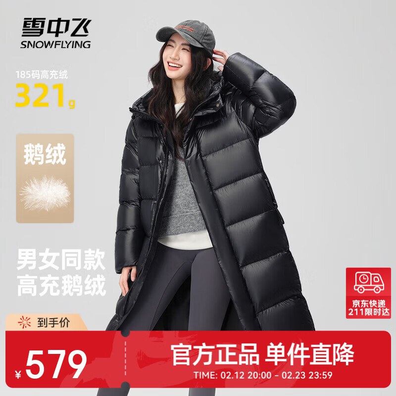 雪中飞【黑曜石】【鹅绒】【成毅推荐】新款H版型加厚连帽鹅绒服羽绒服