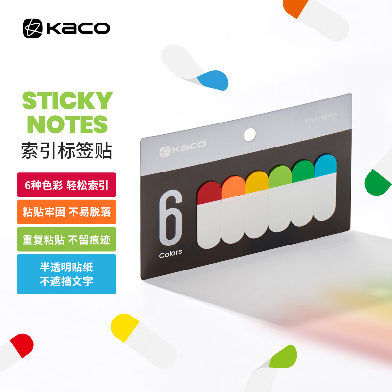KACO 索引标签贴6色*20张指示贴 考试复习重点归类便利贴记事贴考研 15*43mm