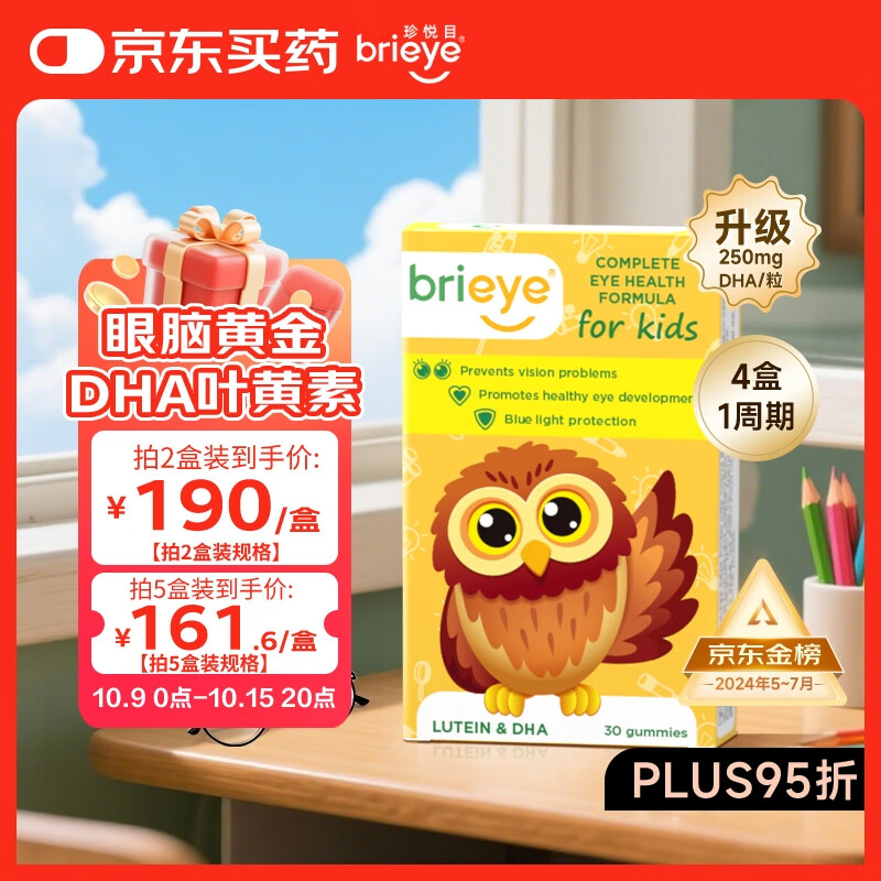 brieye珍悦目儿童DHA叶黄素 青少年补脑 婴幼儿鱼油叶黄素护眼软糖1盒