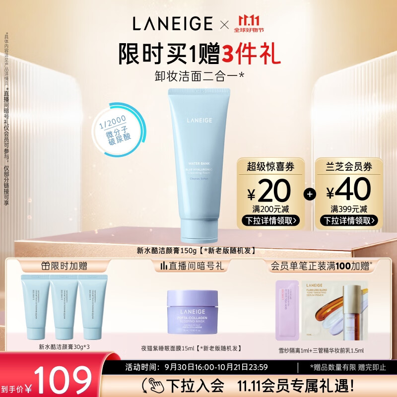 兰芝洗面奶新水酷透明质酸嘭润洁颜膏150g洁面深清洁保湿送生日礼物