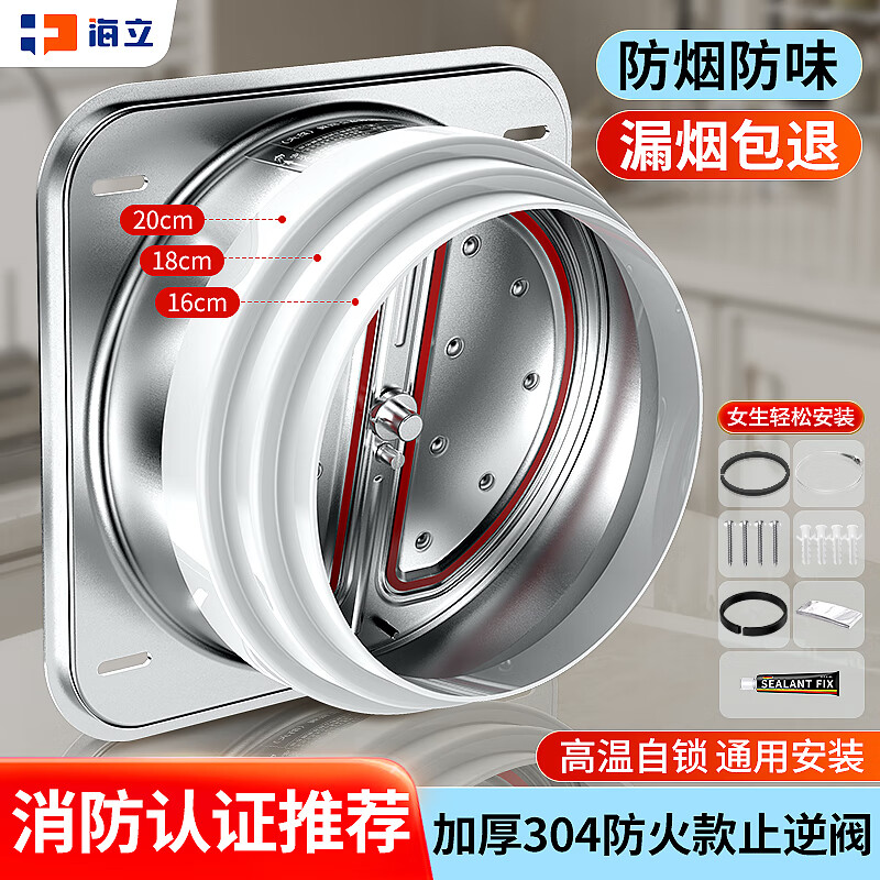 海立厨房油烟机止逆阀加厚304不锈钢烟道止回阀防火防烟防味通用YZ242