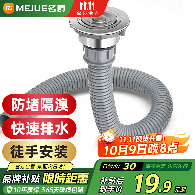 名爵(MEJUE)不锈钢洗菜盆单槽下水器厨房菜盆提篮下水管套装厨房配件2317