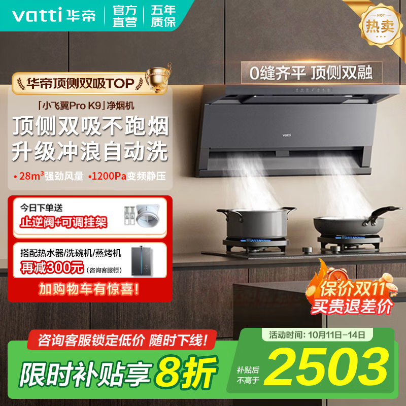 华帝(VATTI)顶侧双吸【小飞翼Pro】抽吸油烟机灶具套装大吸力超薄平嵌i11237/i111K9 家用变频自清洁以旧换新 K9单烟机|28风量/顶侧双吸