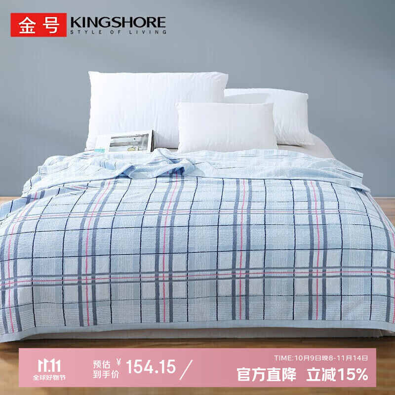 金号纯棉经典格子毛巾被可水洗毯子空调被午睡盖毯A类加厚毛毯一条