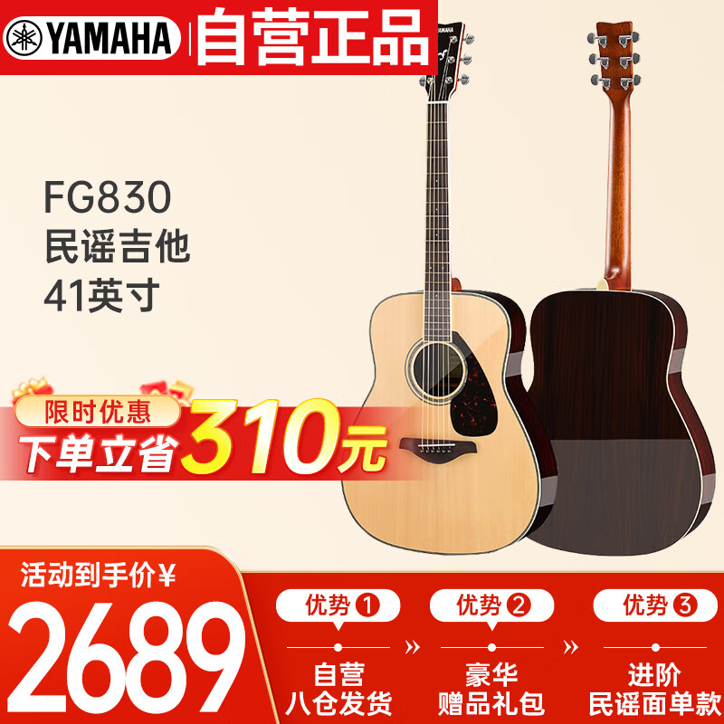 雅马哈(YAMAHA)FG830 原声款 实木单板 初学进阶民谣吉他41英寸吉它亮光原木色