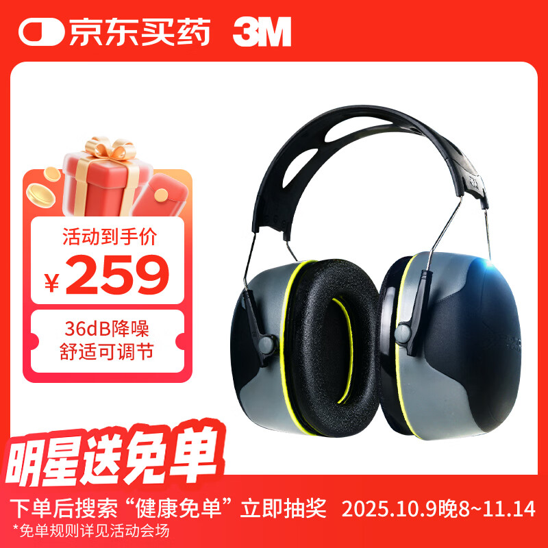 3M 隔音耳罩舒适降噪可折叠头戴式消音睡眠耳罩防噪音耳罩 97042
