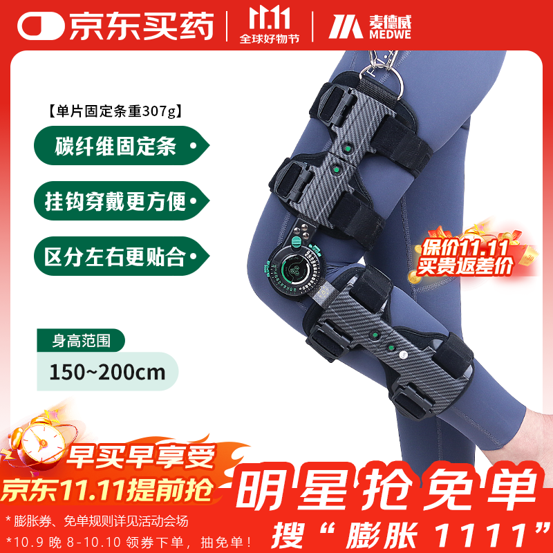 麦德威膝关节固定支具碳纤维膝盖护具支架髌骨骨折下肢腿部护具
