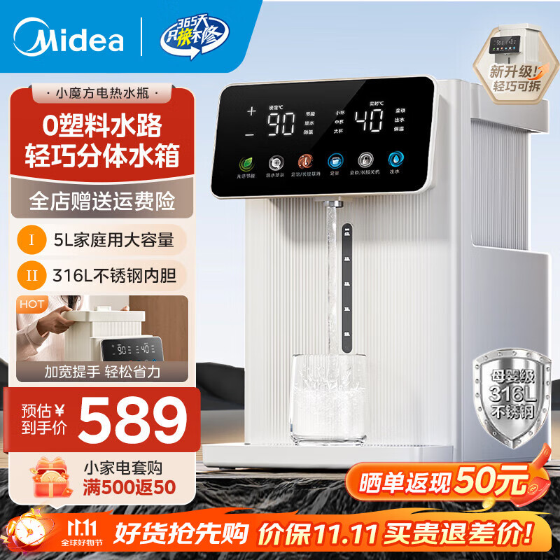 美的(Midea)小魔方pro电热水瓶可拆 烧水壶电热水壶 316L不锈钢大容量保温恒温全自动一体饮水机 5L 【轻巧可拆】MK-SP50E-20FPro