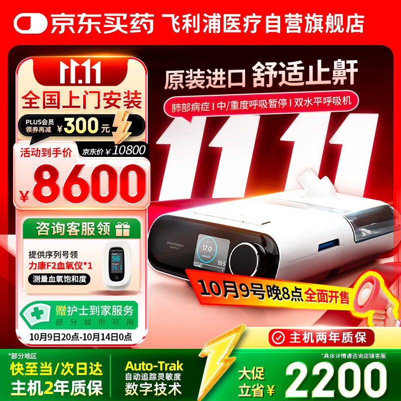 飞利浦(PHILIPS)呼吸机家用双水平无创进口医用睡眠止鼾器防打呼噜呼吸暂停DSST25