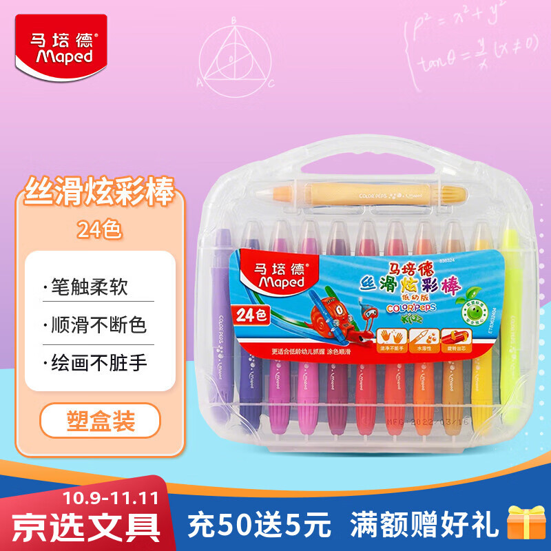 马培德Maped水溶性丝滑炫彩棒24色可水洗油画棒旋转蜡笔儿童无毒不脏手幼儿园画笔开学文具836324CH