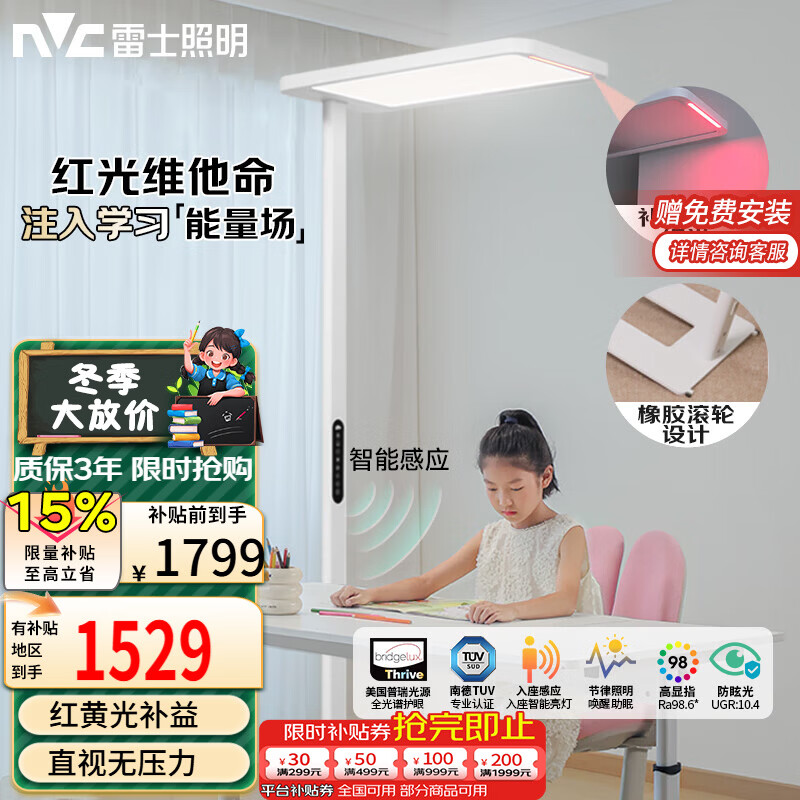 雷士(NVC)钢琴儿童学习阅读大路灯家用立式护眼台灯全光谱太阳光未来光pro