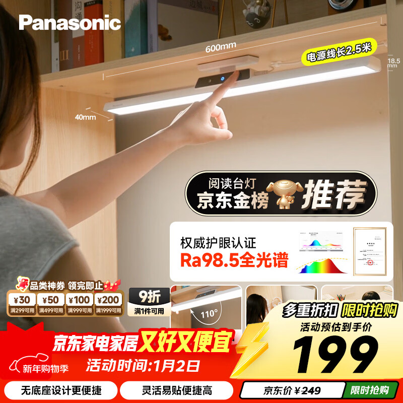 松下(Panasonic)高照度护眼台灯全光谱壁挂式AAAA级护眼 书桌上下铺学习灯酷毙灯