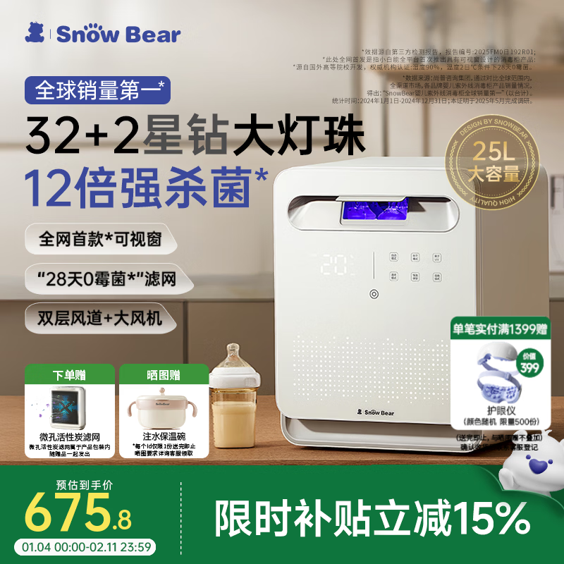 小白熊婴儿消毒柜 奶瓶消毒烘干一体机紫外线消毒器 【主推爆款】2030款 34颗灯珠 25L 紫外线消毒