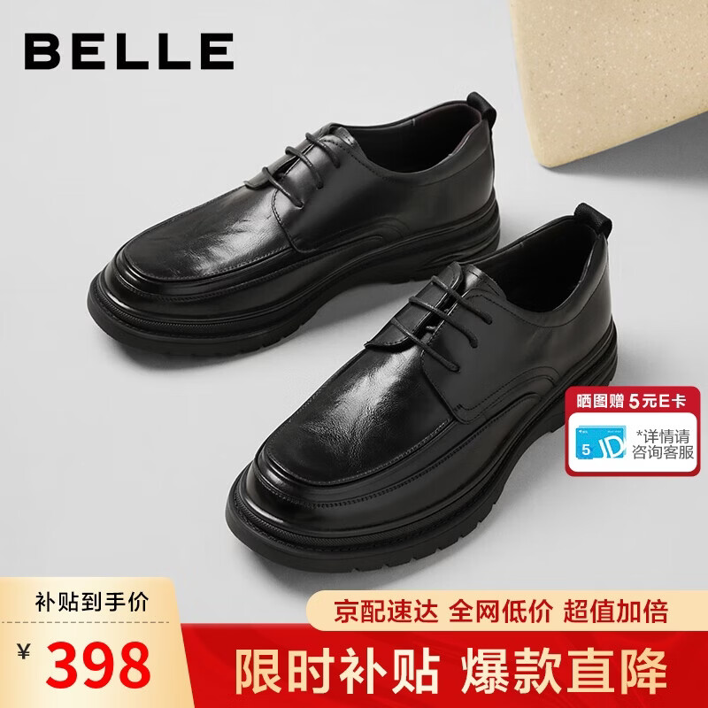 百丽情人节礼物通勤商务皮鞋男牛皮褶皱增高休闲鞋A1373AM4 黑色2 42