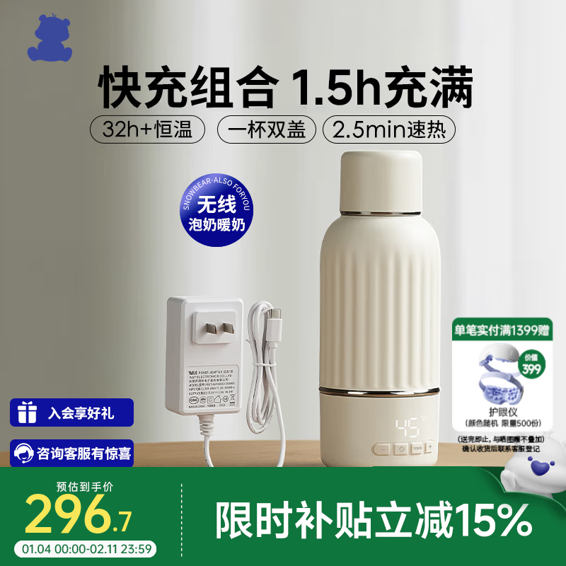小白熊无线便携式奶瓶水壶婴儿调奶器泡奶暖奶恒温杯儿童外出冲奶保温杯 【TDS检测+快充】巴氏消毒5076TDS 500ml