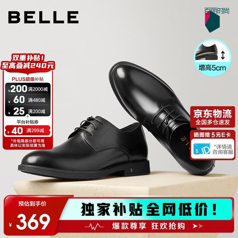 百丽男鞋商务正装皮鞋休闲增高软底真皮鞋A0917 黑色-内增高 41