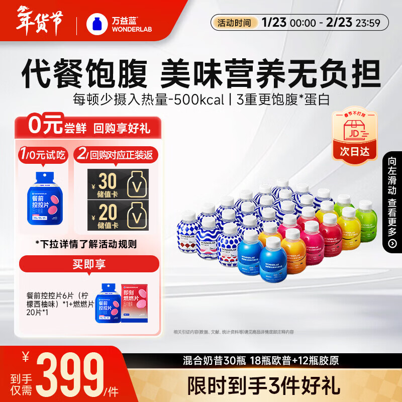 万益蓝WonderLab 营养代餐奶昔 早餐膳食纤维 高饱腹感 75g*30瓶