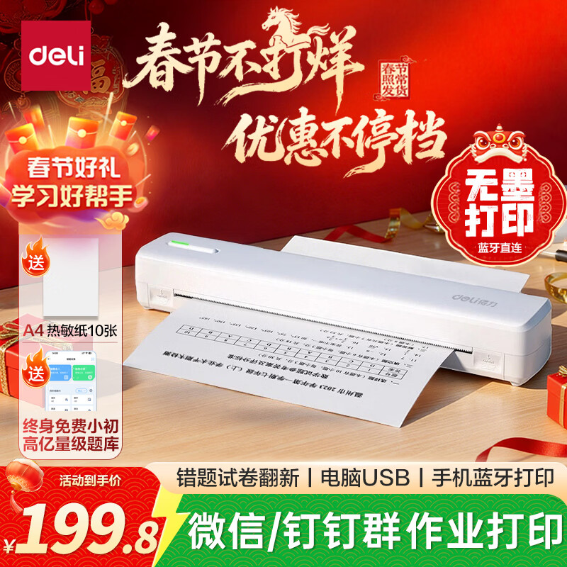 得力(deli)X8E学习错题打印机 A4家用作业整理照片试卷喵喵机学生开学文具礼物便携热敏标签打印机203dpi高清