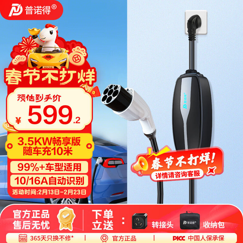 普诺得随车充 适配于特斯拉比亚迪理想i8小米yu7 新能源汽车便携式充电枪线充电桩 3.5KW16A畅享款10M
