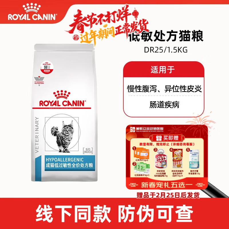 皇家低敏处方猫粮DR25 呵护皮肤健康消化系统成猫处方猫粮 【会员价207】DR25低敏全价 1.5kg*1袋