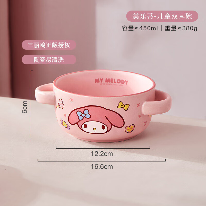 满朝佳(MANCHAOJIA)美乐蒂儿童碗双耳陶瓷吃饭专用宝宝早餐蒸蛋羹沙拉汤面小碗家用