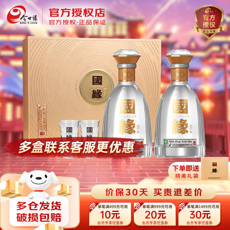 今世缘国缘第五代对开礼盒42度500ml*2瓶装江苏名酒礼盒装节日送礼白酒 42度 500mL 2瓶