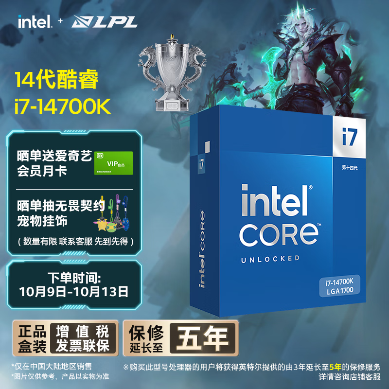 英特尔(Intel)i7-14700K 酷睿14代 20核28线程 五年质保 台式机盒装处理器CPU 游戏办公