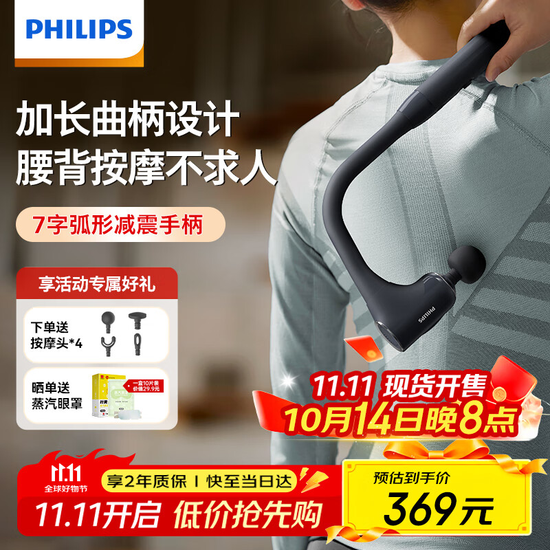 飞利浦不求人筋膜枪肌肉按摩器全身按摩仪专业级深层按摩颈膜枪3503G臂式按摩锤 男女生日礼物