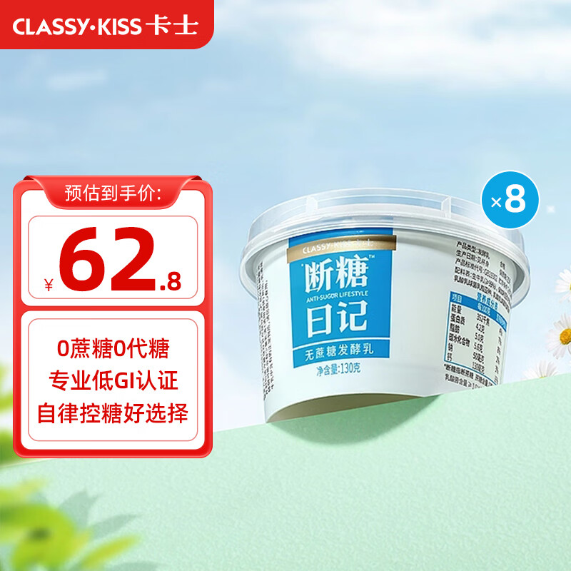 卡士断糖日记130g*8杯0蔗糖原味低温酸奶 源头直发 包邮