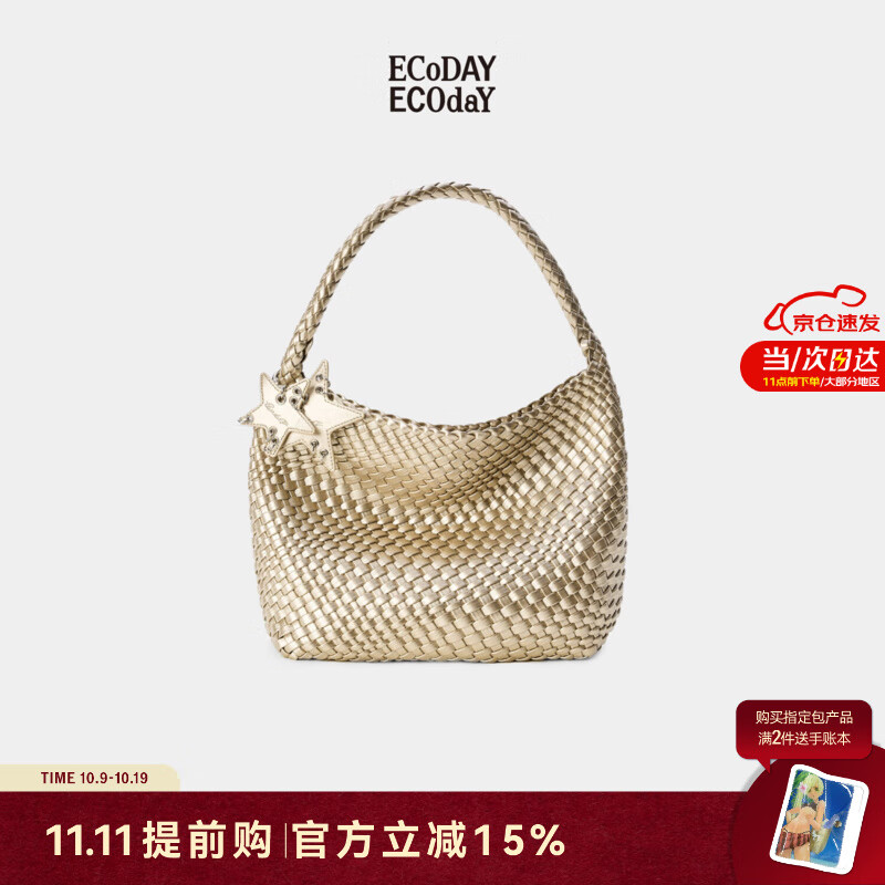 ECODAY编织托特包大容量通勤手提单肩包女包生日情人节礼物送女友 香槟色(中号)