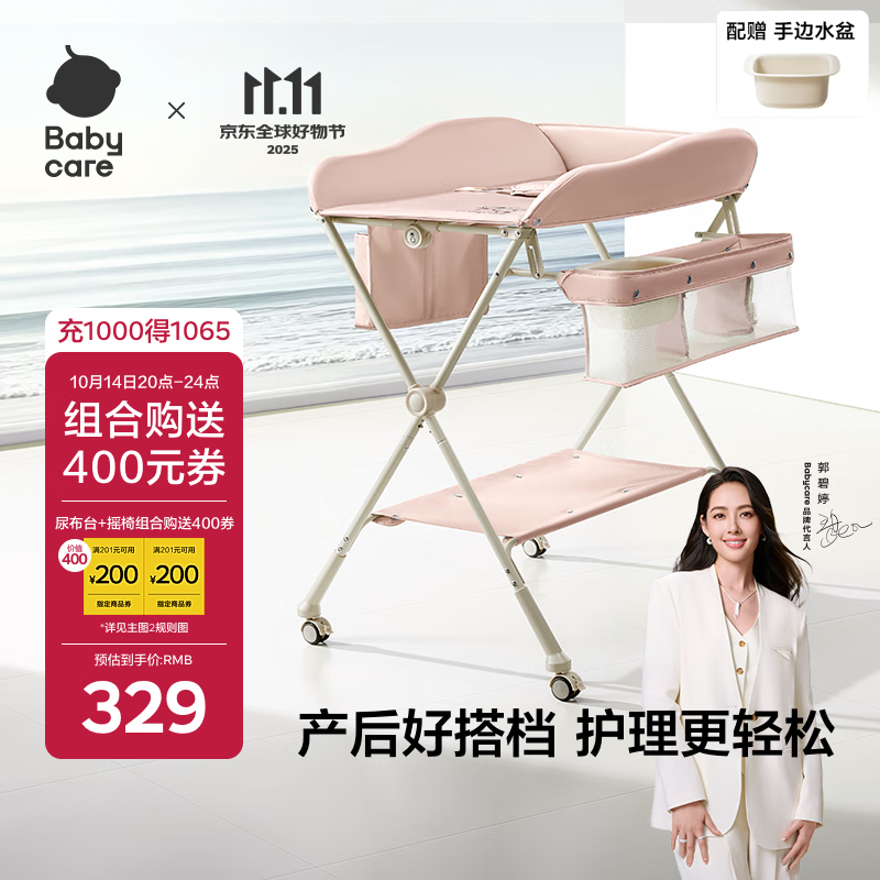 babycare尿布台多功能可折叠新生儿护理台抚触洗澡便携婴儿床 -珀尔里粉