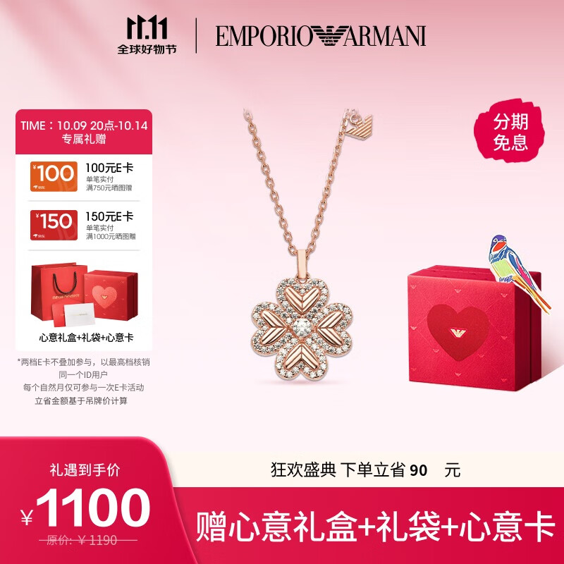 EMPORIO ARMANI阿玛尼女士项链幸运芯四叶草项链生日礼物送女友EG3609221