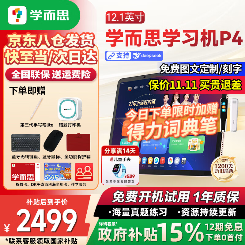 学而思学习机P4标准款PRO2025焕新款新版学习平板小学到高中课程同步全科全年龄段AI电脑初中学前儿BJ70 P4【6+256G】送三代手写笔+DK千奇百科 【官方正品】