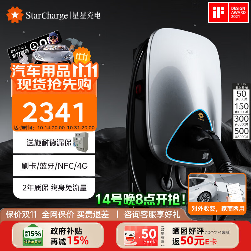 万帮星星充电桩7kw极光家用充电桩新能源电动汽车适配特斯拉小米 su7 yu7比亚迪华为理想i8 30米安装包送装一体