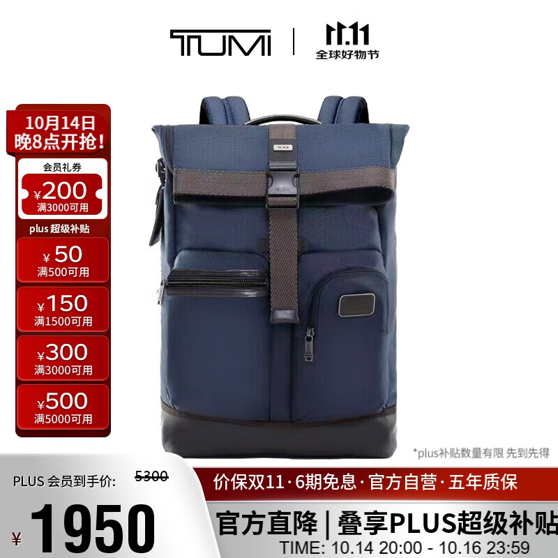 途明(TUMI)FREMONT男士双肩包通勤简约卷顶电脑包大容量翻盖旅行包 海军蓝