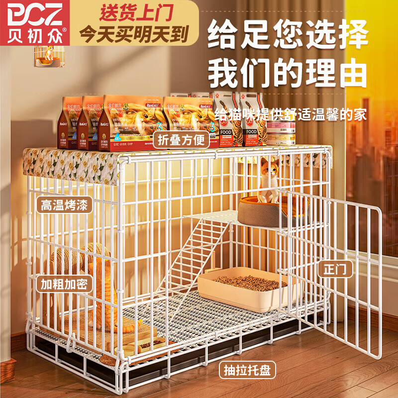 贝初众猫笼子猫咪折叠猫笼家用猫笼子双层大号猫屋宠物笼带厕所一体大猫 70*52*59cm【适合15斤内】 【折叠免安装】豪华双层/带厕所 加粗加密/真材实料