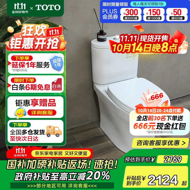 TOTO智洁马桶无棱内壁直冲节水全包家用坐便器CW802 305坑距(04-B)