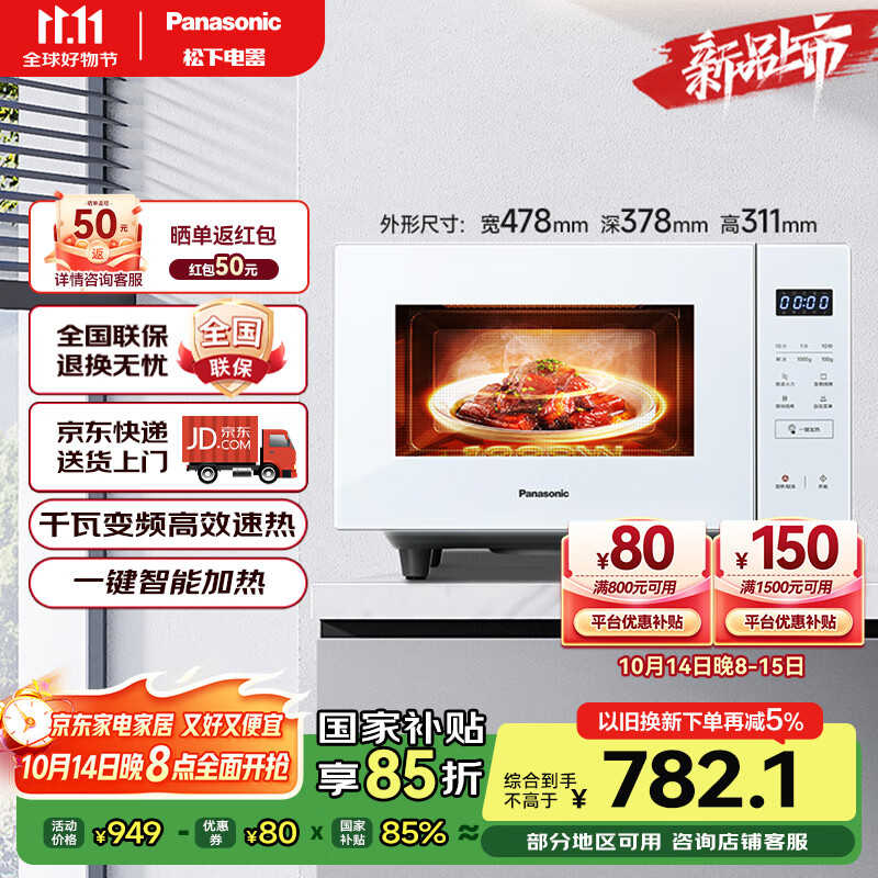 松下(Panasonic)一键智能加热22升大容量变频大火力平板式微波炉烤箱一体机NN-GF233Q
